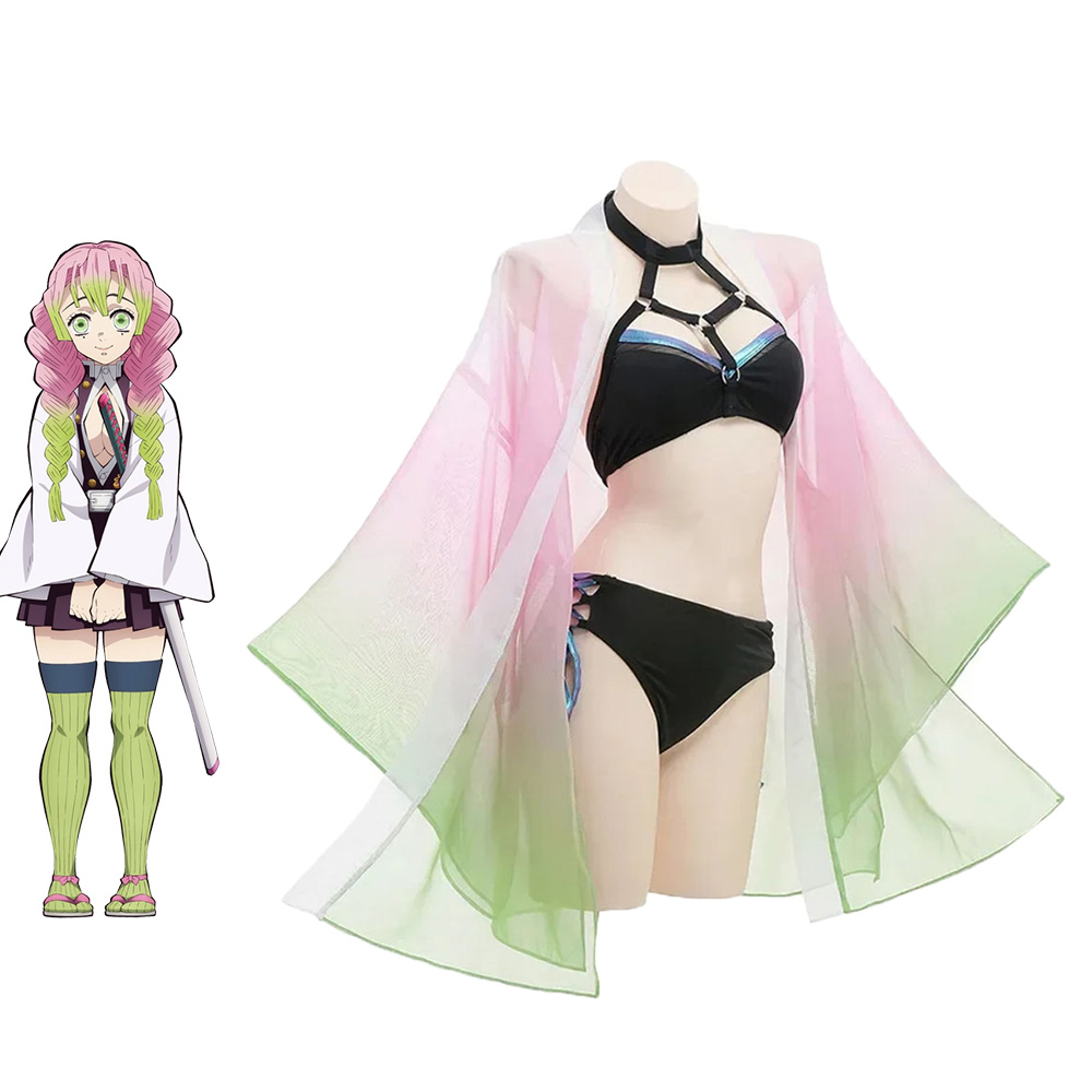 Anime Demon Slayer Kanroji Mitsuri Swimsuit Set Summer Bikini Beach Disguise Carnival Swimsuit