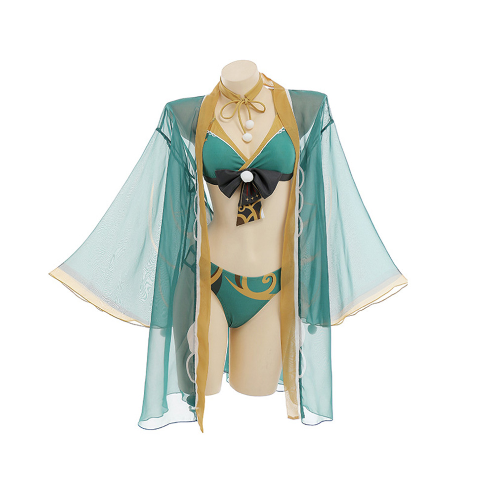 Anime New Skin Swimsuit Bikini With Kimono Cover Up Women Venti Hutao Cosplay Swimwear