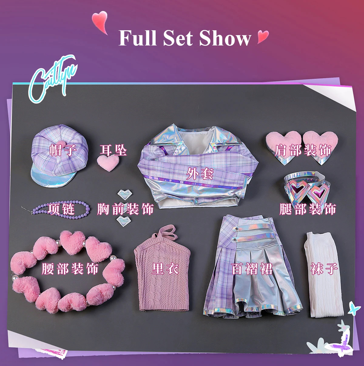 Game League of Legends Caitlyn Cosplay Cosutme Women Purple Lovely Uniform