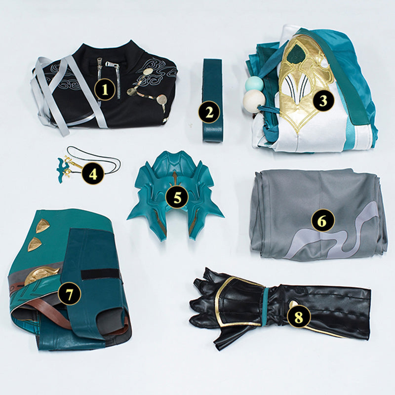 • Package Include: Top, Leg strap, Coat, Earrings, Arm guards, Pants, Waist cummerbund, Gloves