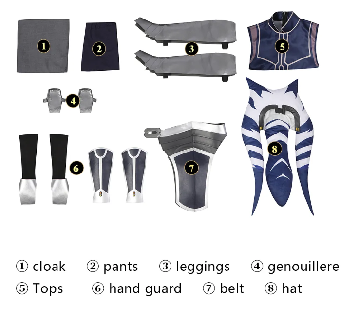 Movie Star Wars Clone Ahsoka Full Set Outfits Halloween Cosplay Costume 4995