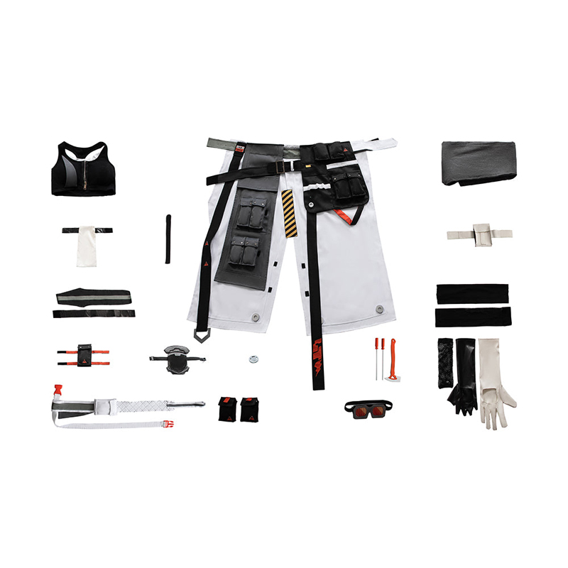 • Package Include:  Glasses, Top, Gloves, Armband, Tattoo stickers, Neckwear, Waist cummerbund, Pants, Hand guards, Wristband, Kneepad, Top bandage+bag, Back accessory, Prop