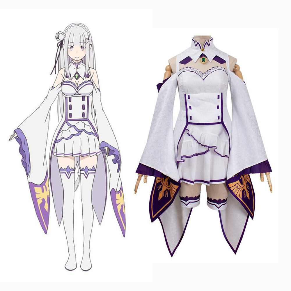 Anime Re: Life In A Different World From Zero Emilia Cosplay Costume ,Stockings And Leg Warmers
