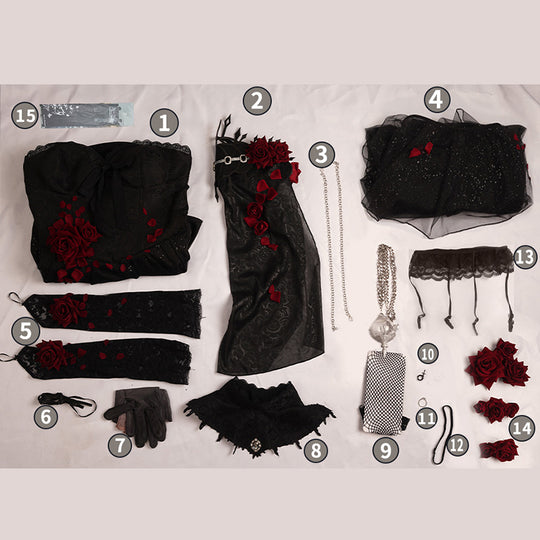 • Package Include: Dress, Headwear, Bracelet, Apron, Sleeves, Gloves, Shawl, Accessory, Earrings, Ring, Leg wear, Strap, Rose accessory