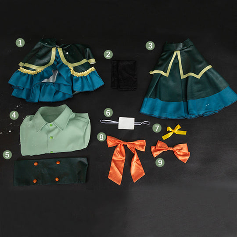 • Package Include: Shirt, Shawl, Headwear, Stockings, Waist cummerbund, Chest bowtie, Waist bowtie, Skirt, Eyepatch