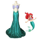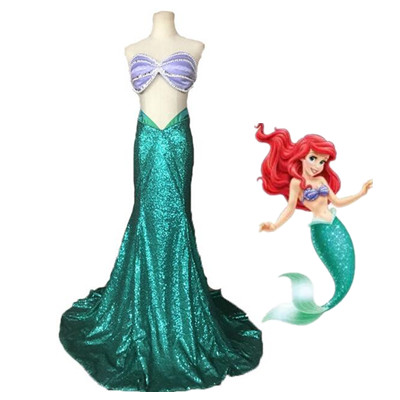 New Arrival Ariel Costume Fancy Halloween Green Dress Sexy Purple Princess Bra Top Performance Party
