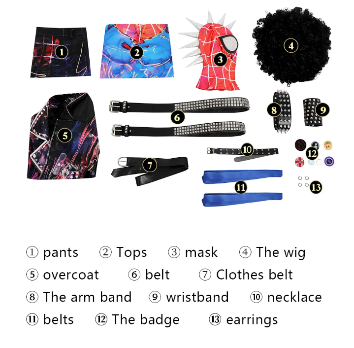 Spider-Man: Across The Spider-Verse Spider-Punk Hobart 'Hobie' Brown  Cosplay Costume Halloween Costume Sets DC Movie 5200