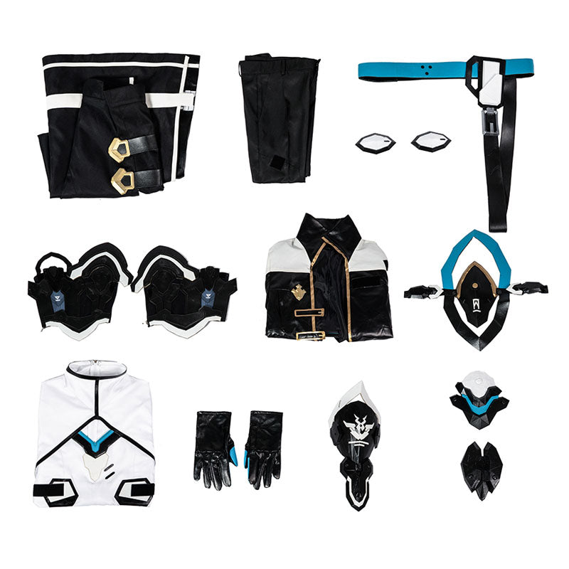 Package Include: Inner parts, coat, pants, cloak, leather armor holster*2, blue belt, black belt set, gloves*2, chest armor, arm armor, back armor, pants diamond leg stickers*2, knee armor components.